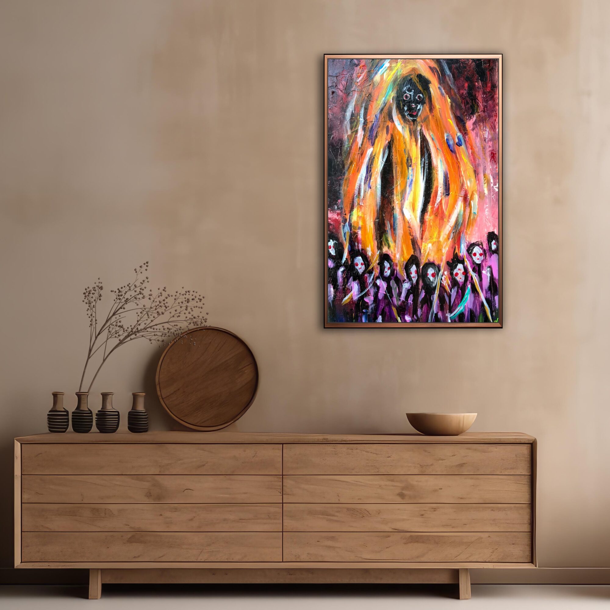 My art is inspired by a myth I created, a story about the creation of the universe and the mythical, surreal beings that appear in my paintings. My work is about returning to our origins, connecting art with magic, spirituality, and mystery. In my series “Los Malhechos”, I bring these supernatural beings to life to explore how the universe began, using the power of the elements, art, and universal love. Through my paintings, I hope to share a sense of connection and wonder that unites us all while celebrating the marvels our world has to offer and appreciating the incredible journey of being alive. If you want to learn more about the Myth of Los Malhechos, you can find more information in the blogs here.
