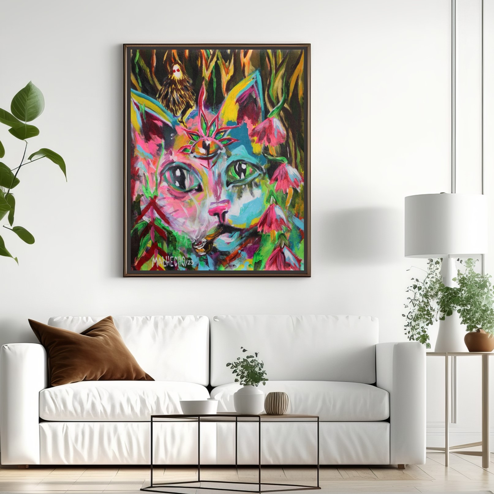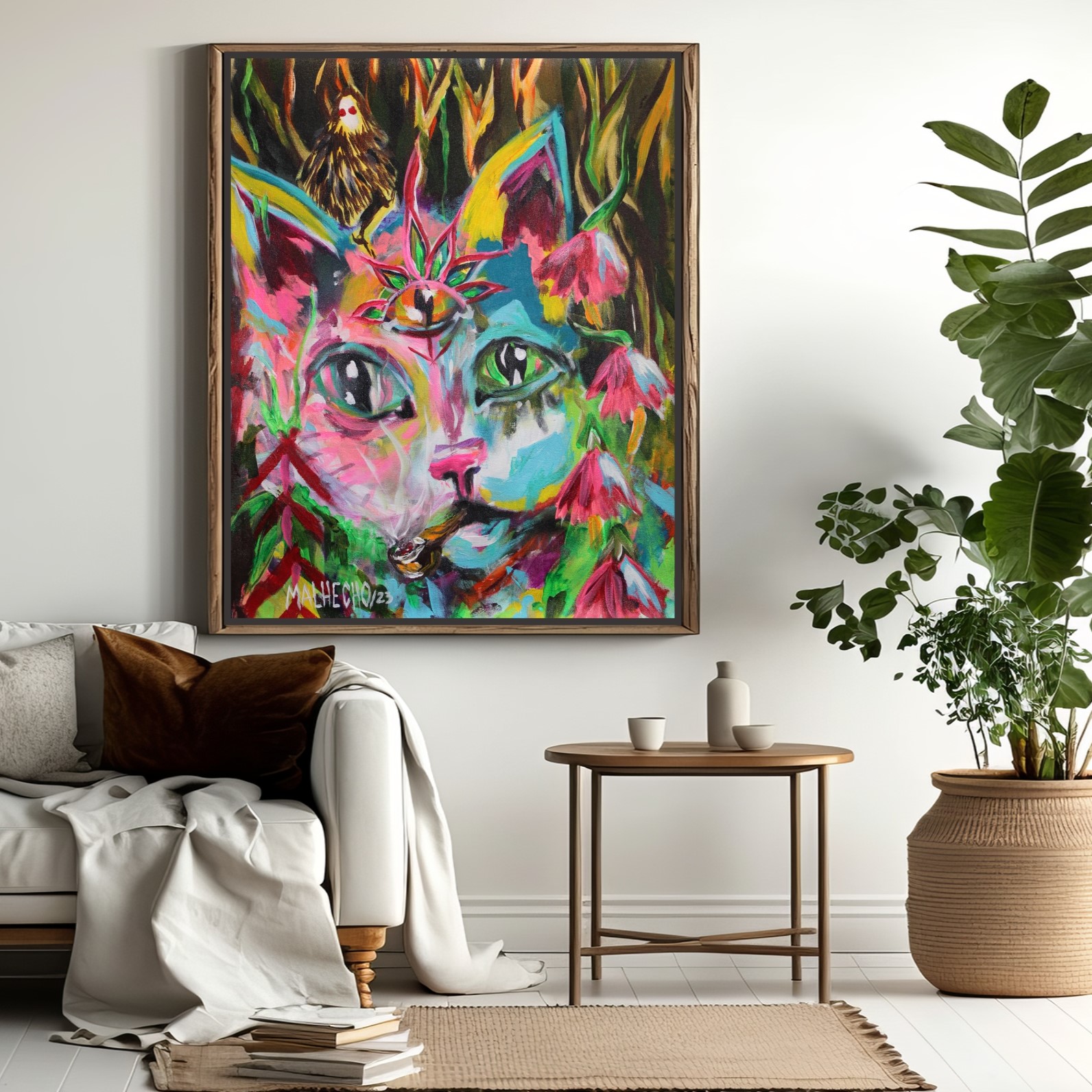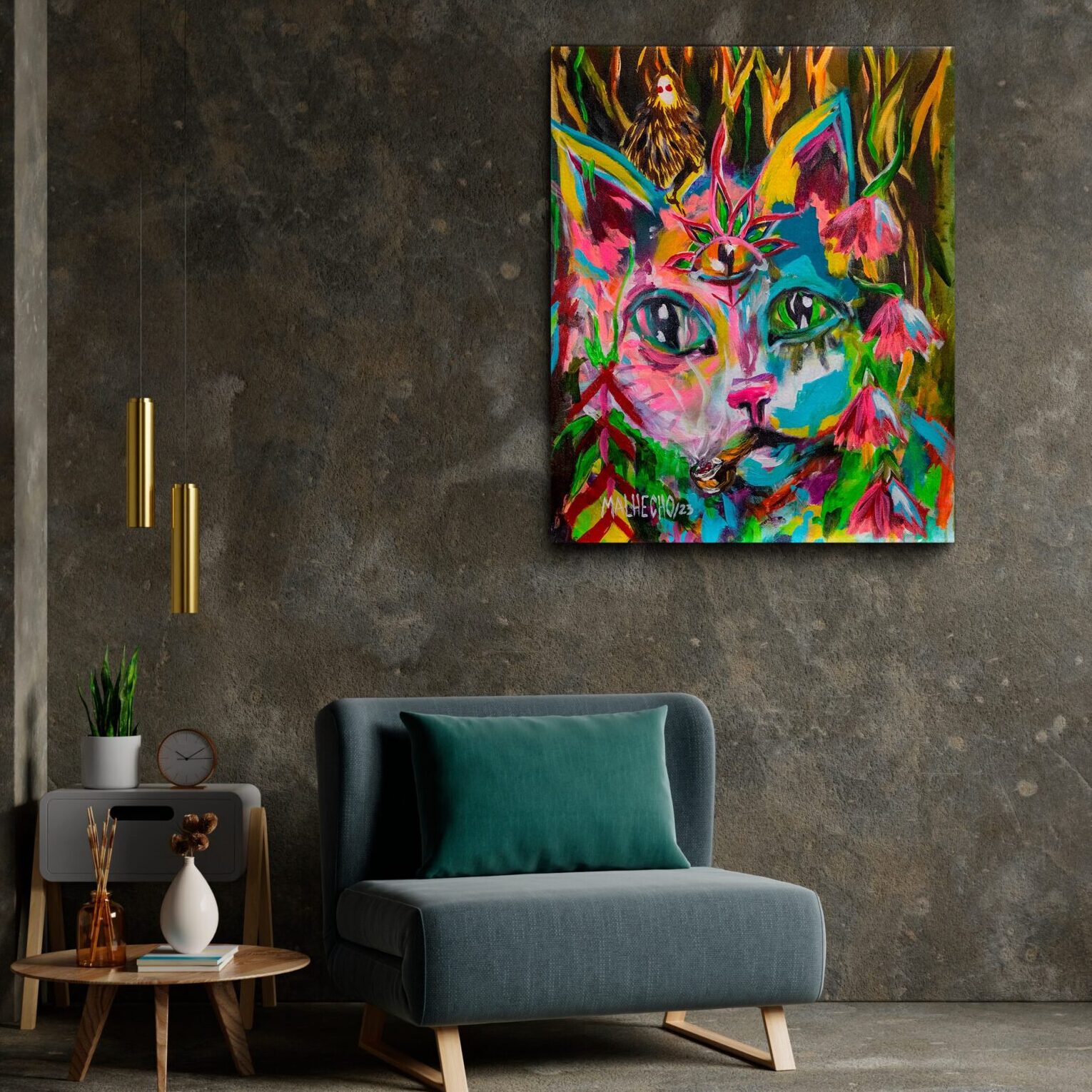 My art is inspired by a myth I created, a story about the creation of the universe and the mythical, surreal beings that appear in my paintings. My work is about returning to our origins, connecting art with magic, spirituality, and mystery. In my series “Los Malhechos”, I bring these supernatural beings to life to explore how the universe began, using the power of the elements, art, and universal love. Through my paintings, I hope to share a sense of connection and wonder that unites us all while celebrating the marvels our world has to offer and appreciating the incredible journey of being alive. If you want to learn more about the Myth of Los Malhechos, you can find more information in the blogs here.