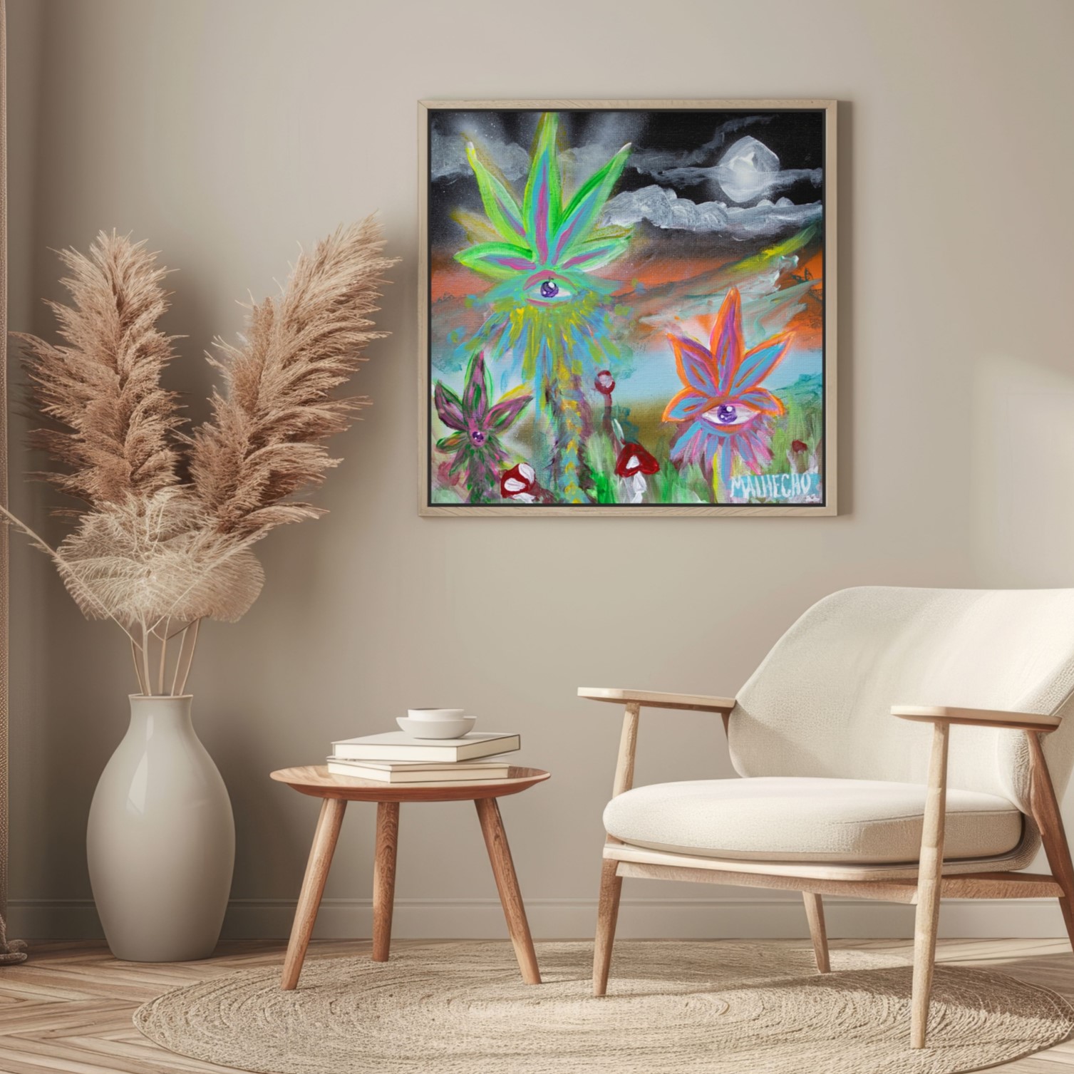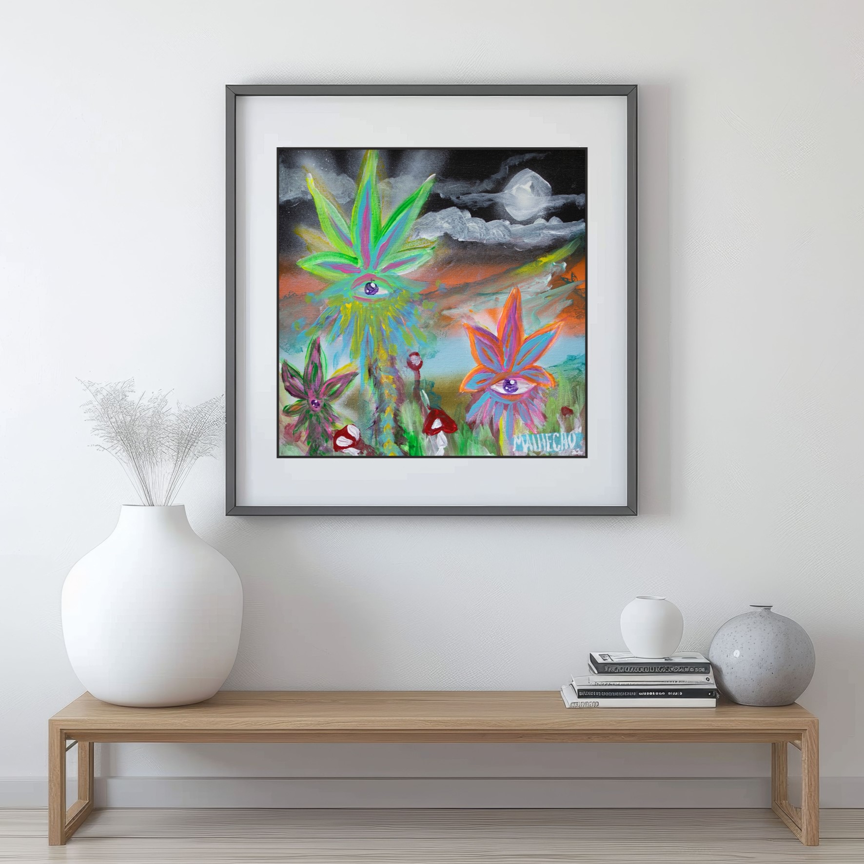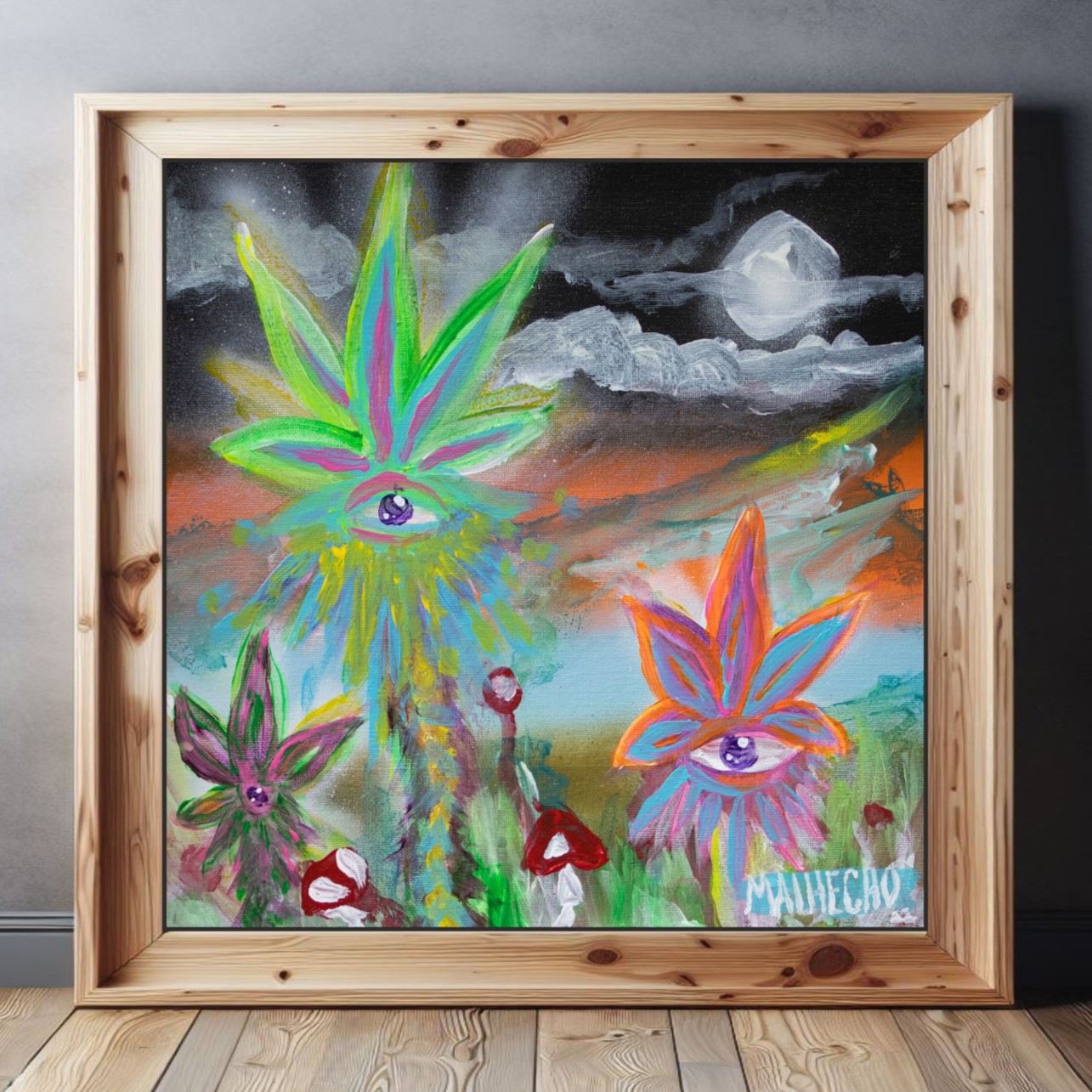 My art is inspired by a myth I created, a story about the creation of the universe and the mythical, surreal beings that appear in my paintings. My work is about returning to our origins, connecting art with magic, spirituality, and mystery. In my series “Los Malhechos”, I bring these supernatural beings to life to explore how the universe began, using the power of the elements, art, and universal love. Through my paintings, I hope to share a sense of connection and wonder that unites us all while celebrating the marvels our world has to offer and appreciating the incredible journey of being alive. If you want to learn more about the Myth of Los Malhechos, you can find more information in the blogs here.